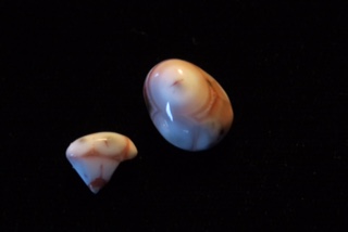 Nodules of massive Thomsonite that display an attractive banded coloring are found along the shore of Lake Superior. Most of these Thomsonite nodules and their derived pebbles are less than 0.6 cm (1/4 inch). Those enclosed in basalt are extremely difficult to remove without breaking them. These specimens must be carefully and patiently removed from the stone using diamond carving tools specifically made for gemstone design.